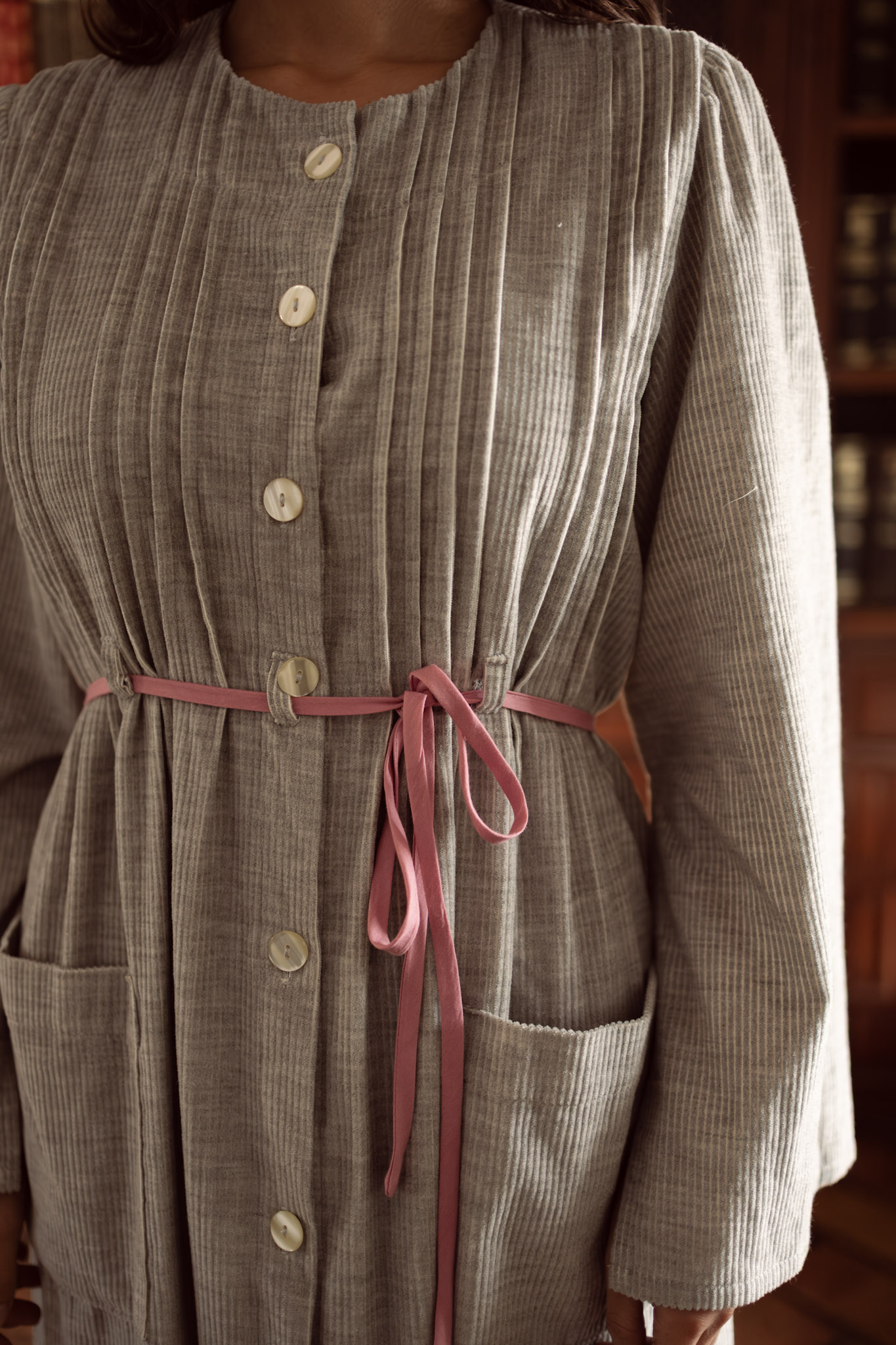 La bata Florencia Pana combina elegancia y comodidad en un diseño de pana gris suave con delicadas tablitas en el pecho. Su cinturón en vivo rosa aporta un toque femenino y permite entallar la figura con sutileza. La manga larga, con apertura desde el codo, añade movimiento y una silueta muy favorecedora. Una bata cálida, estilosa y perfecta para sentirte arreglada incluso en casa.