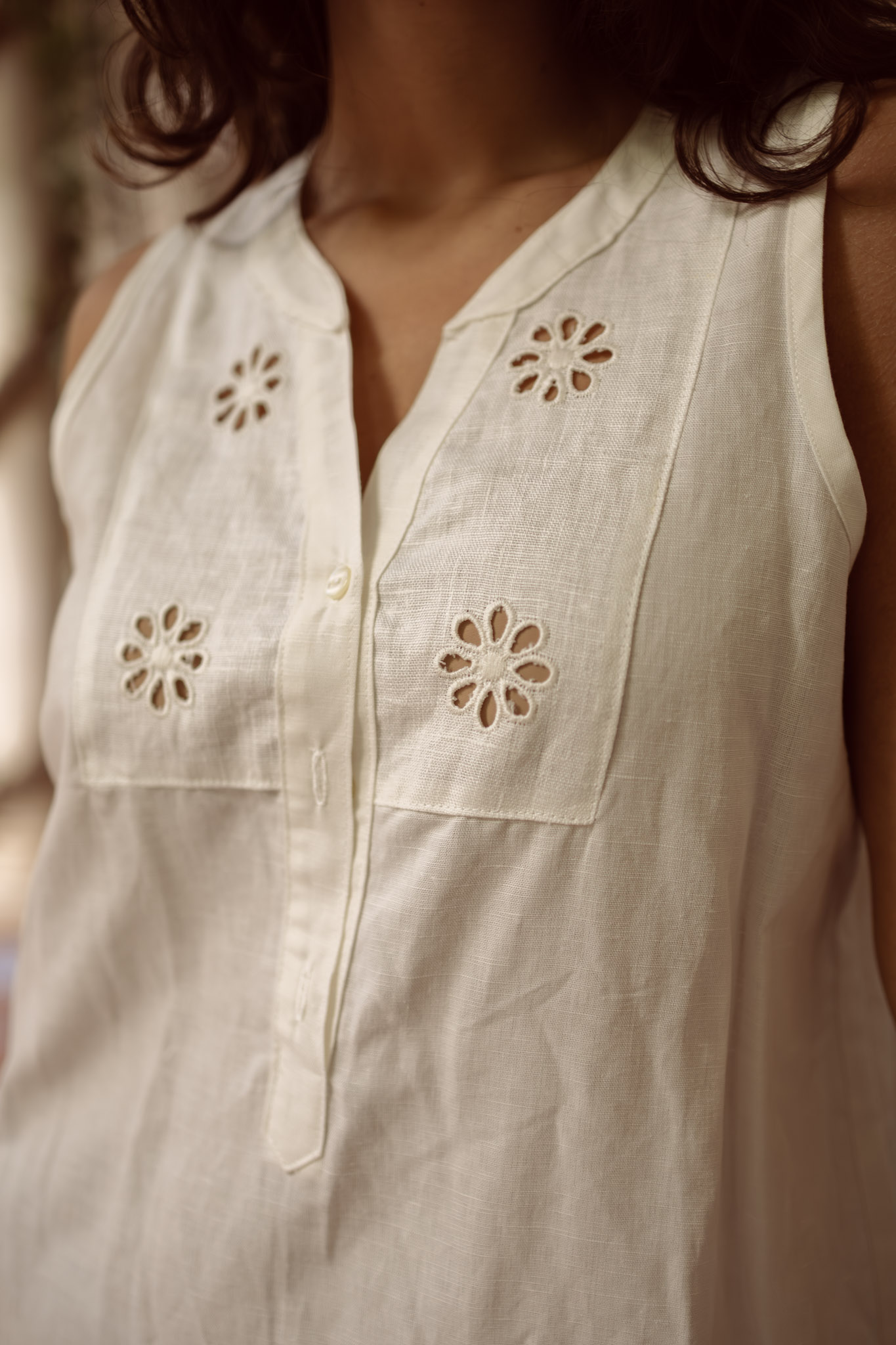 Camisón hecho en hilo con museta de hilo perforado y abierto en el delantero.